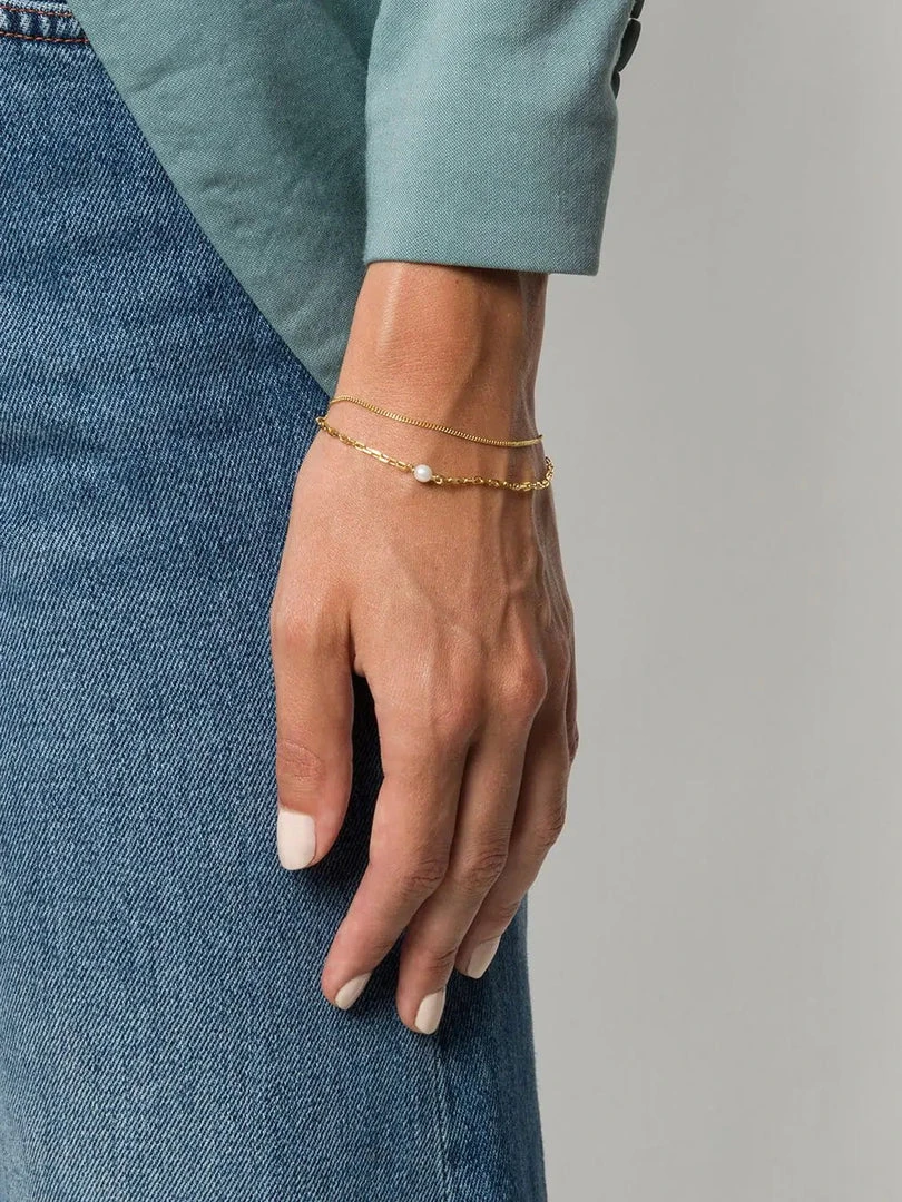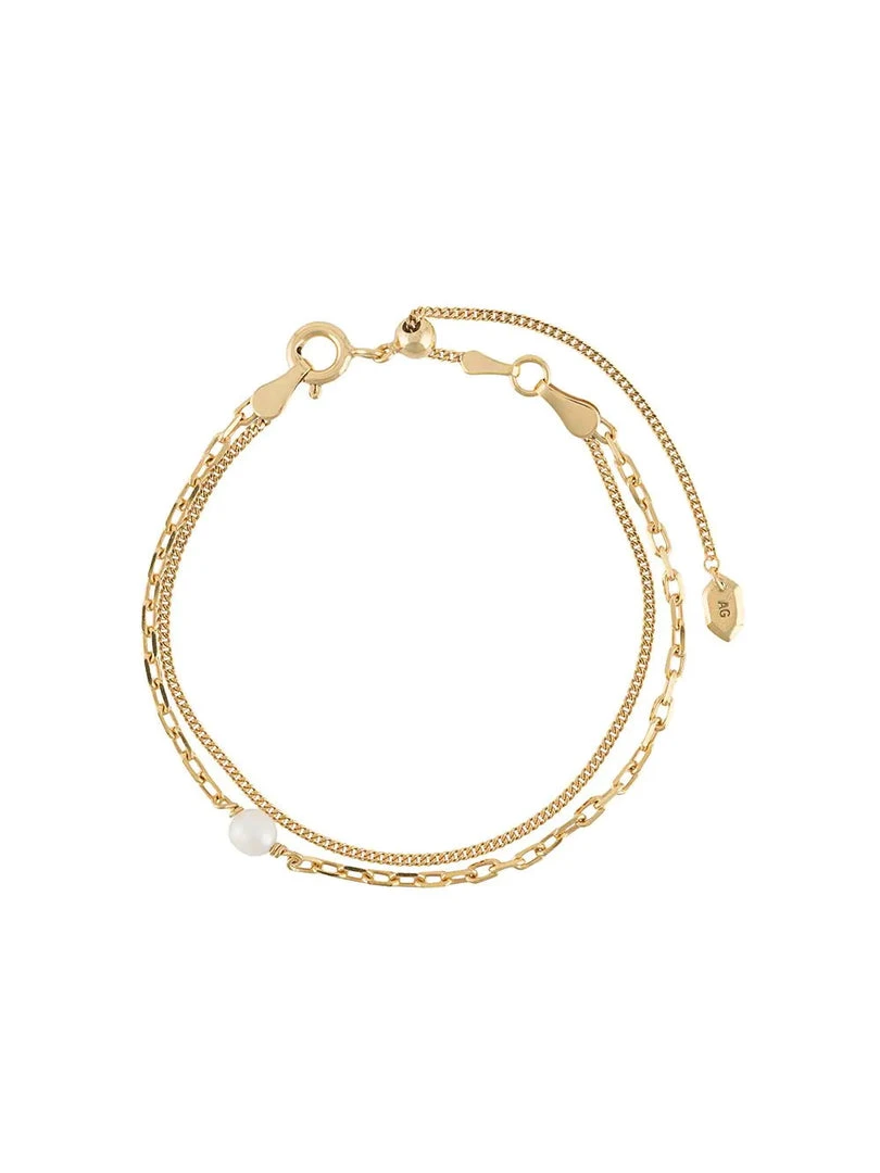 Maria Black gold ‘Cantare’ bracelet featuring a multi chain design, a pearl detail, an adjustable ball and chain feature and a clasp fastening. Length is 13-18.5cm.