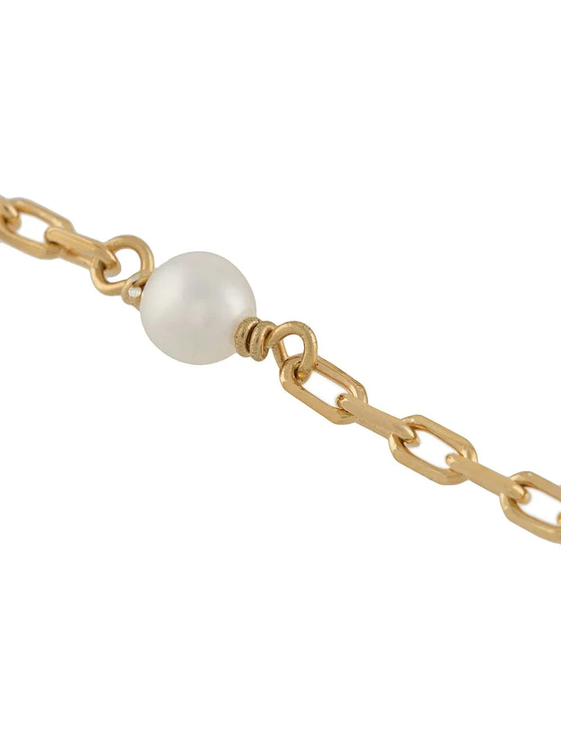 Maria Black gold ‘Cantare’ necklace featuring a multi chain design, a pearl detail, an adjustable ball and chain feature and a clasp fastening. Length is 35-50cm.