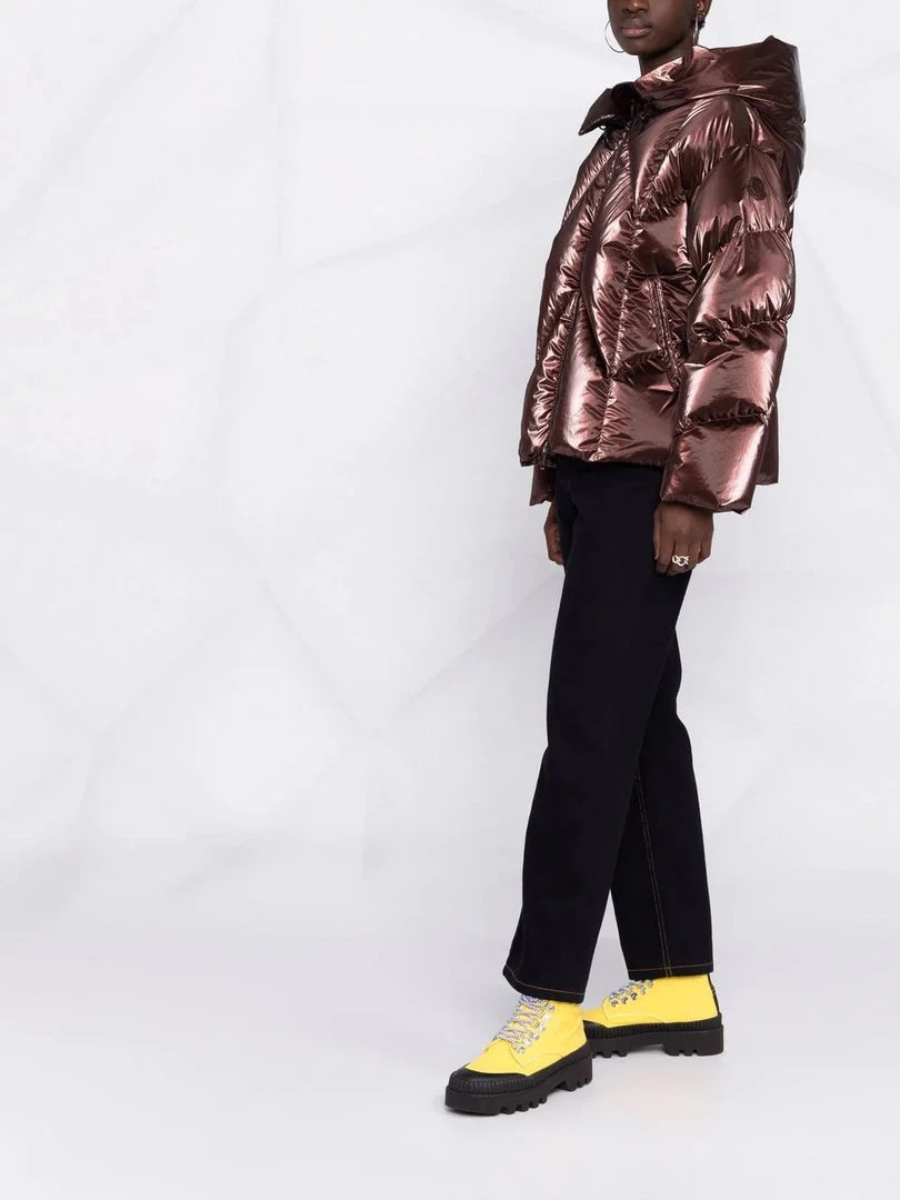 The Frele jacket for women showcases a shiny nylon texture and a versatile design enriched with Moncler’s performance details. This style for women has a relaxed, cozy design with chevron quilting on the front and boudin quilting on the back, emphasizing its graphic nature. The elastic drawcords on the hood, waist and the hem allow the fit to be adjusted as needed. Model is wearing a size 0.