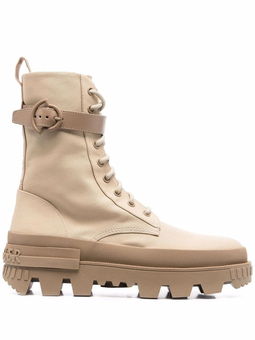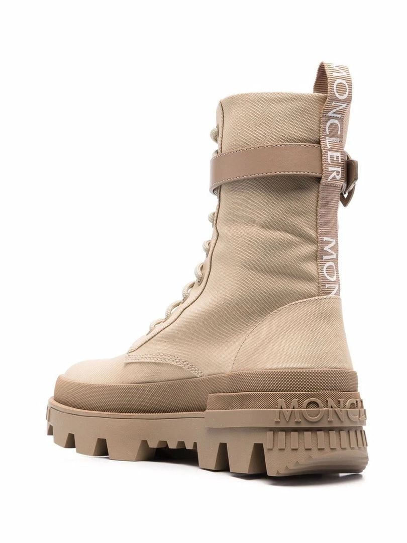 The Carinne ankle boots feature a rugged design that delivers Moncler’s heritage tied to hiking and exploring nature. This style is crafted in leather with a lace up closure, an ankle strap and a logo loop on the back for an easy, comfortable fit. Its rubber outsole with three-dimensional tread is lightened by a polyurethane insert and guarantees maximum comfort, even on a rainy day. Item fits true to size. European Sizing.