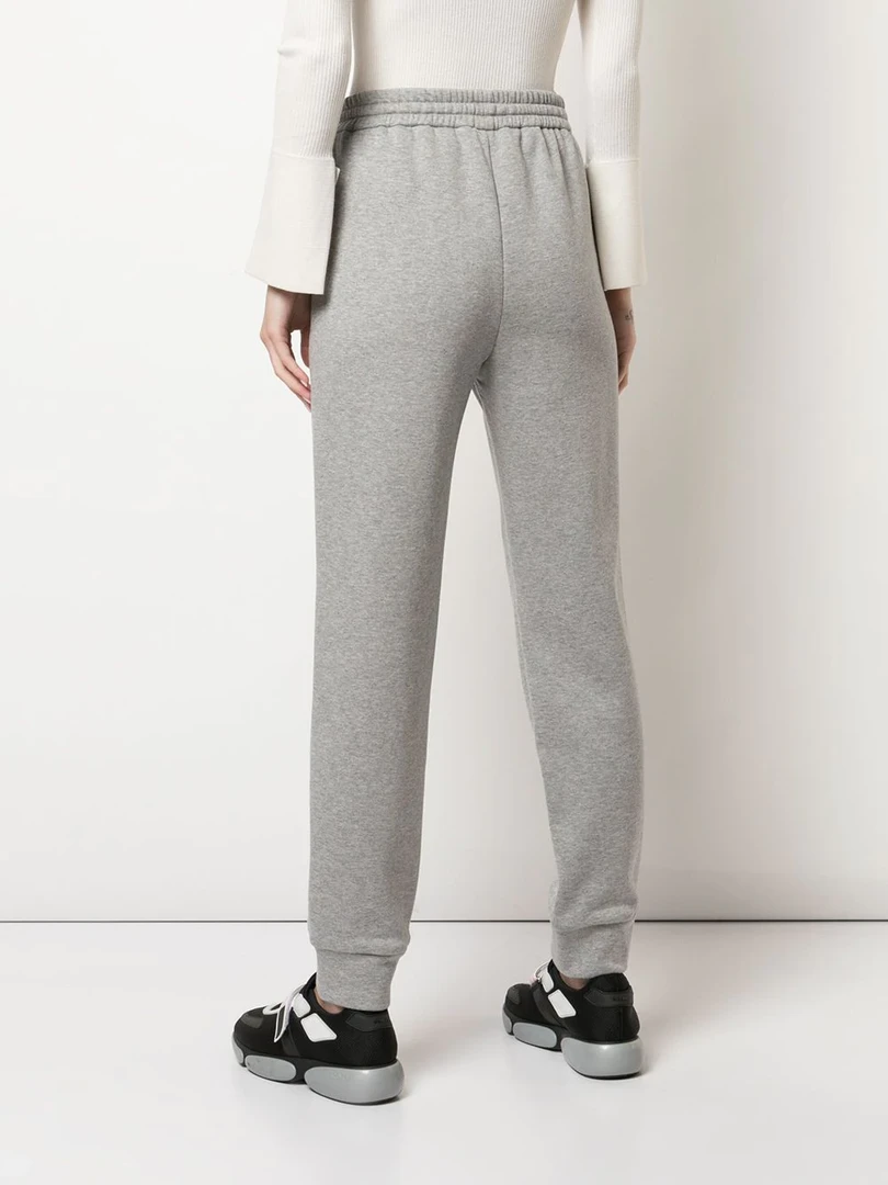 Moncler grey ‘Drawstring Waist Track Pants’ featuring an embroidered logo to the front, side slit pockets and a regular length. Item fits true to size. Model is wearing a size S.