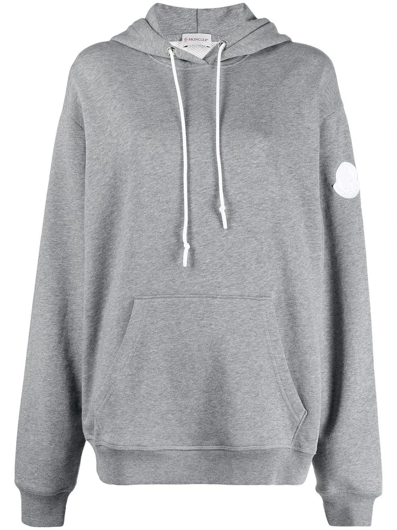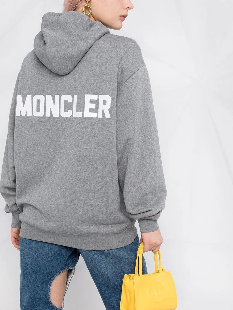 Combining athletic inspiration and performance details which guarantee comfort and warmth, this sweatshirt for women is crafted in soft cotton-blend French terry and showcases a drawcord hood, ribbed edges, and an oversized Moncler logo on the back. Item fits true to size. Model is wearing a size XS.