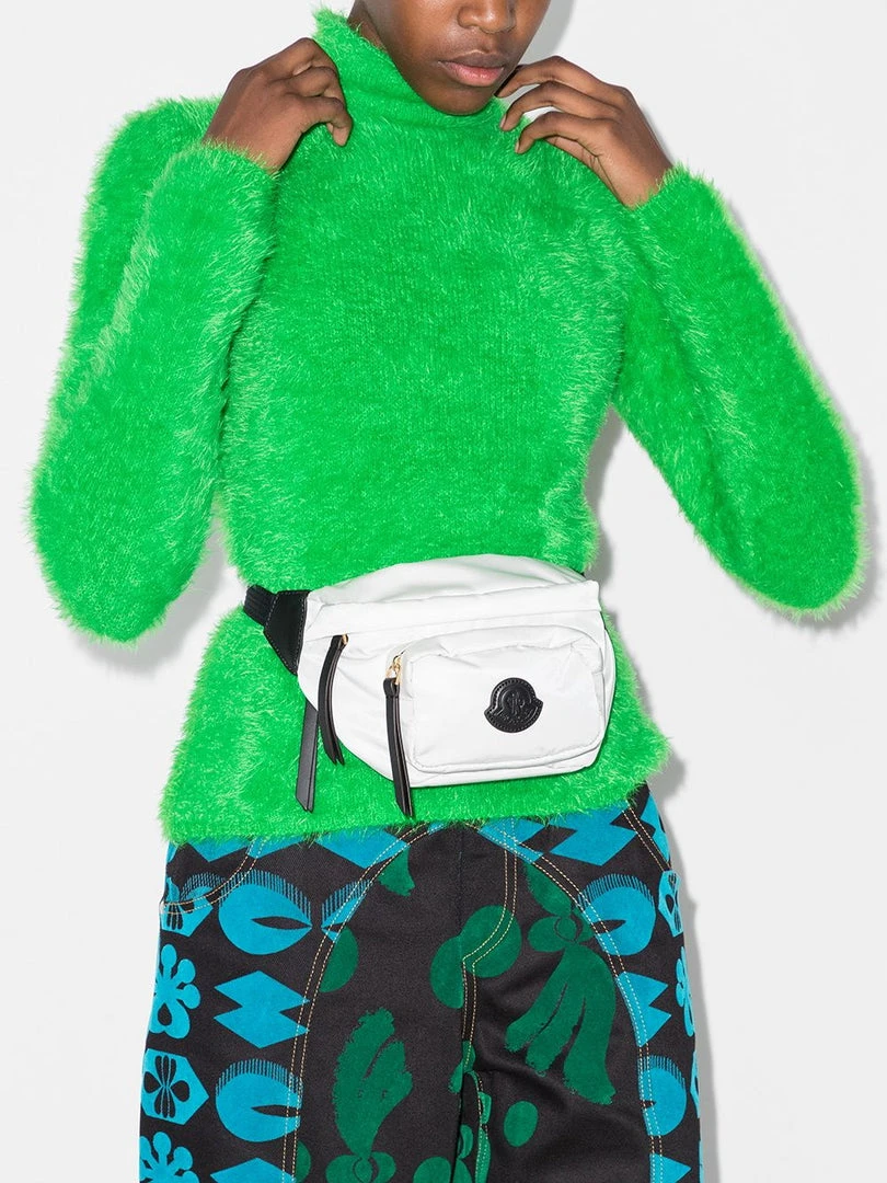 The Felicie belt bag has a distinct, innovative design that expresses Moncler’s strong DNA tied to high-performance and an active lifestyle. The Felicie belt bag for women interprets the latest trends with a distinct, innovative design. Its webbed fabric belt is adjustable to provide the perfect fit, while its leather details add a precious touch. Comes with a dustbag. Made in Romania. One Size.
