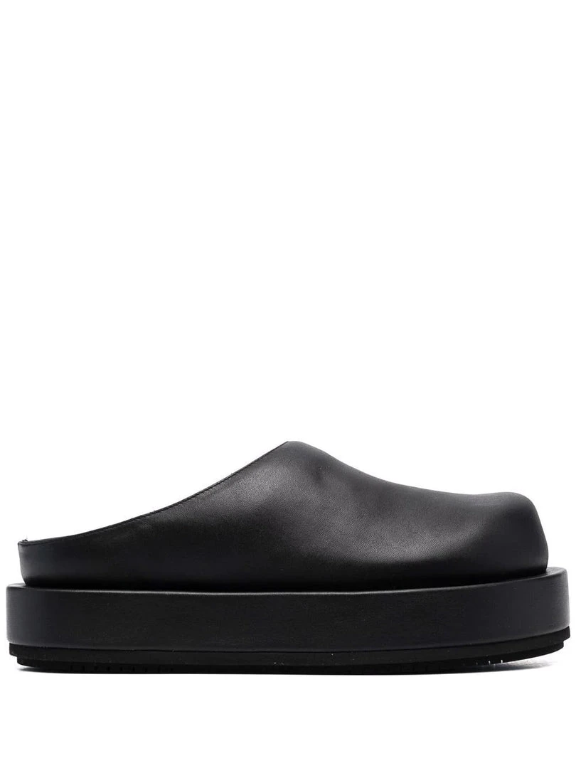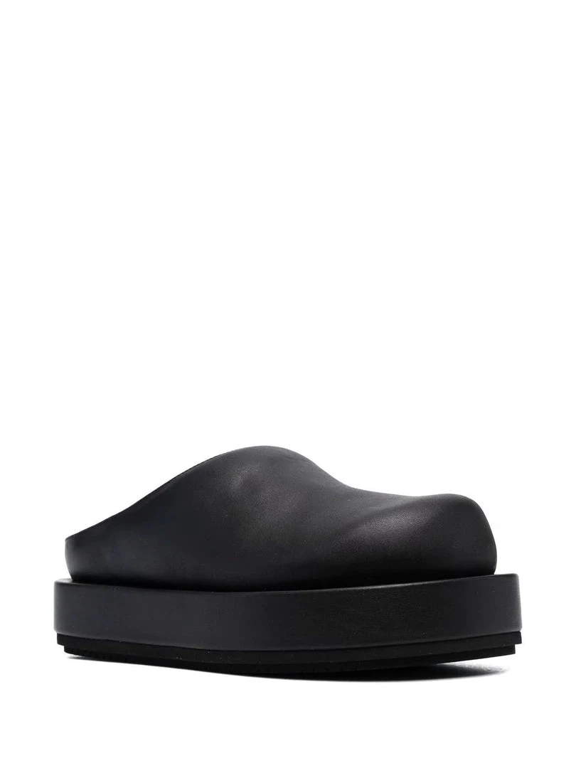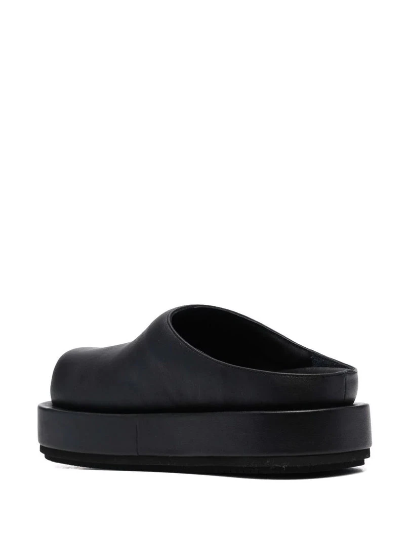 Paloma Barcelo black ‘Daga’ platform mules featuring a round toe, a branded insole and a slip-on style. Made in Spain. Item fits true to size. Italian Sizing.