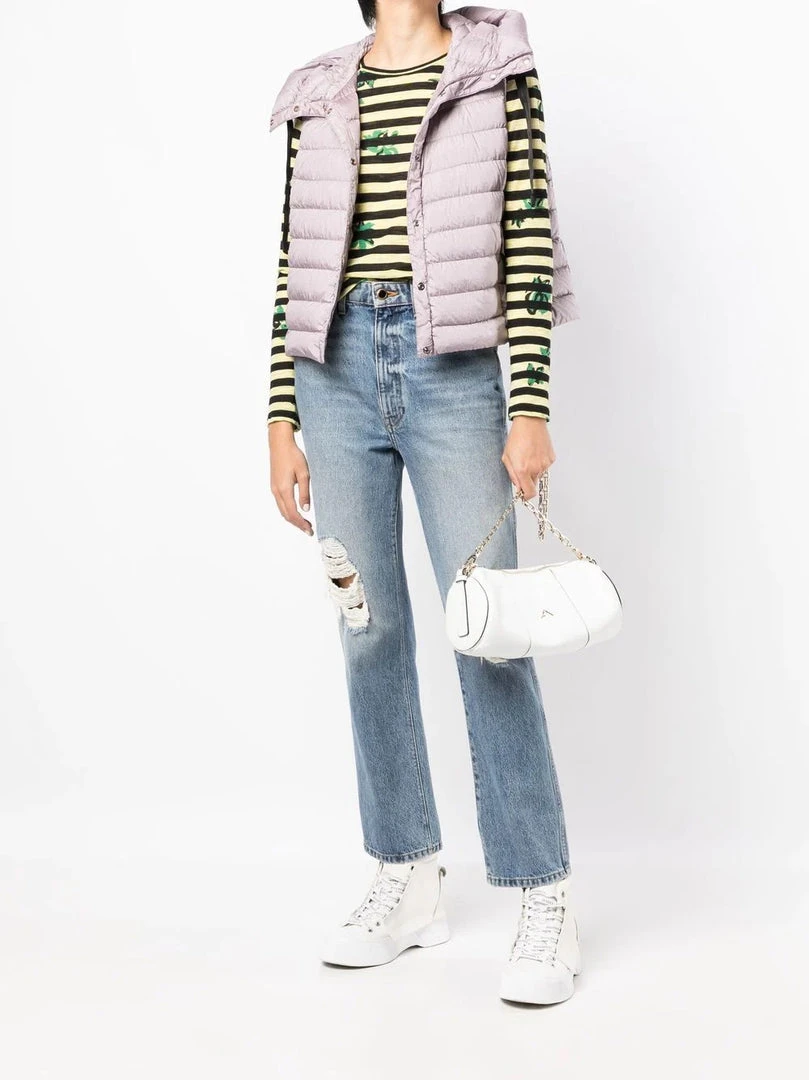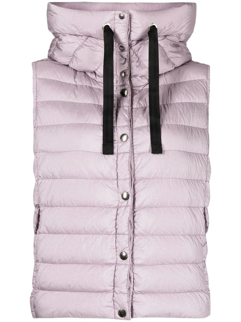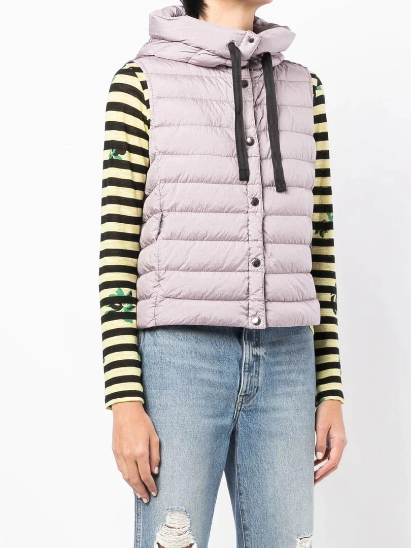 Parajumpers purple ‘Taryn’ gilet featuring a drawstring hood with a logo patch detail, front button fastenings, side zip pockets and a padded design. Item fits true to size. Model is wearing a size S. Â