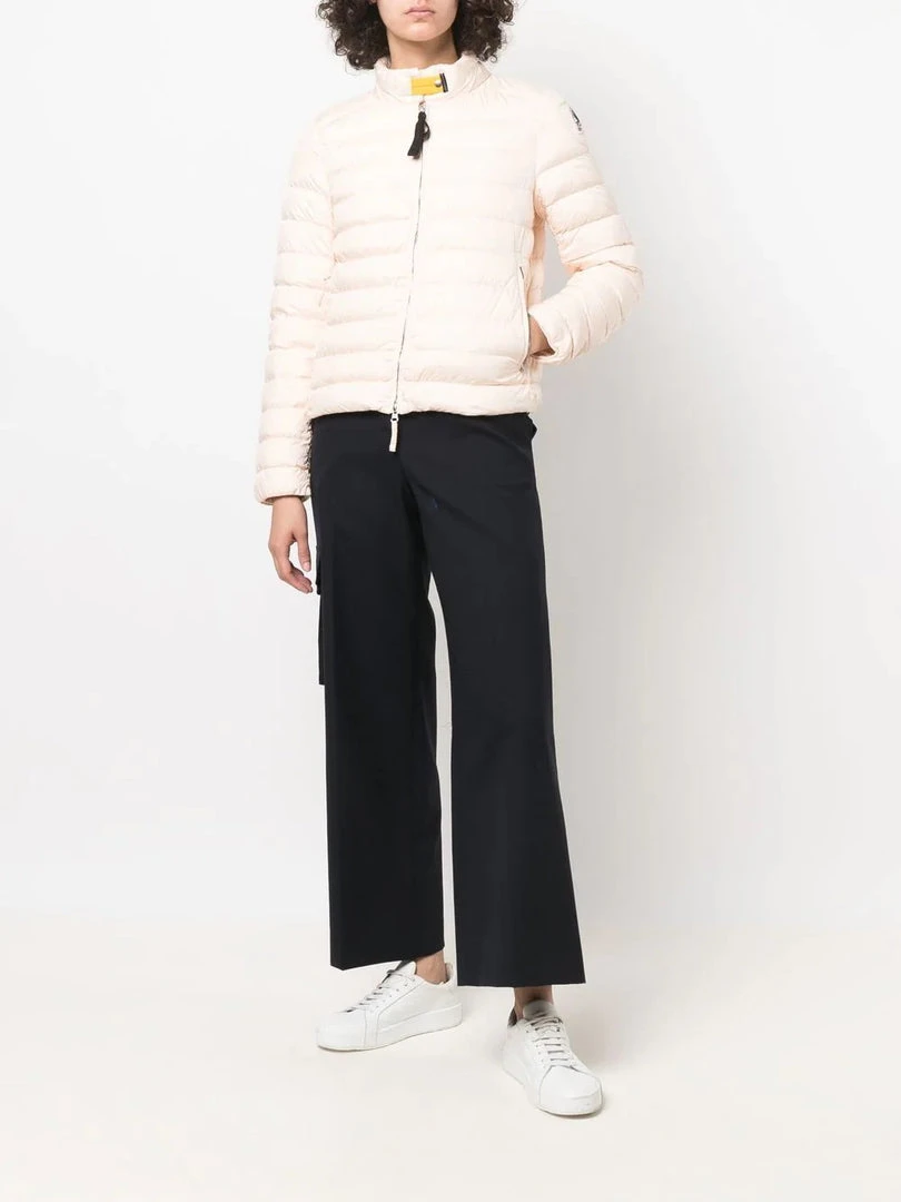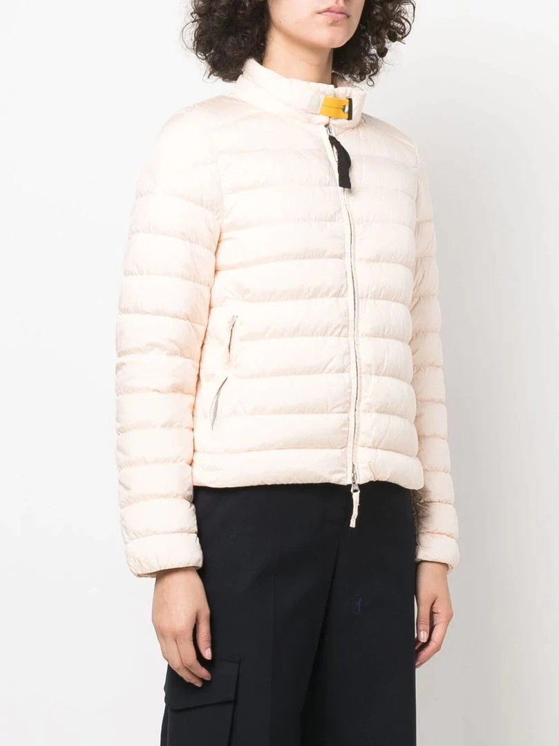 Parajumpers cloud pink ‘Sybil’ jacket featuring a raised neck, a front button and zip fastening, long sleeves, a logo patch on the left arm, front zip pockets and a padded design. Item fits true to size. Model is wearing a size S. Â