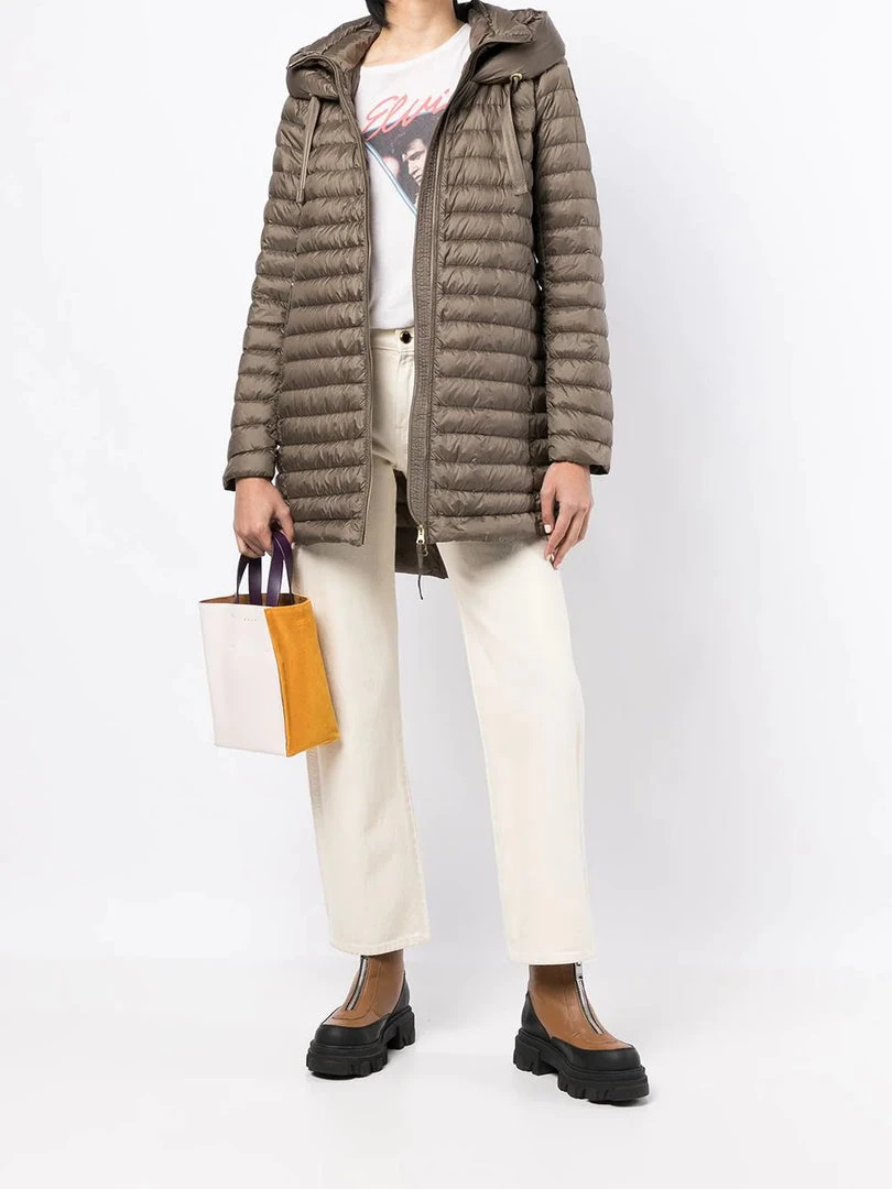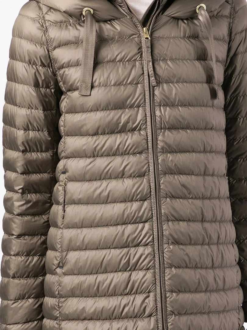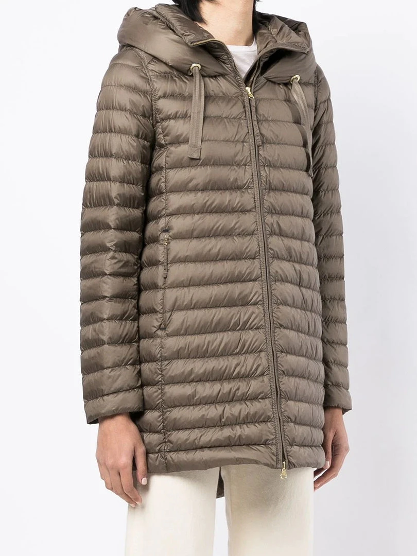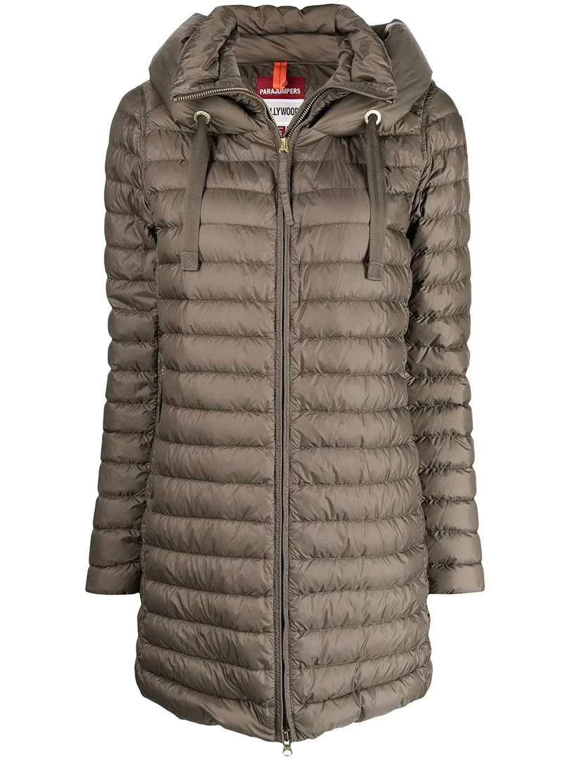 Parajumpers ‘Tessa’ hooded coat featuring a drawstring hood, a two way front zip fastening, long sleeves with an embroidered brand logo patch on the shoulder, inner patch pocket compartments, side zipped pockets, a rear zippered slit, a padded design and a midi length. Fabric has been treated to water repellent. Item fits true to size. Model is wearing a size S.