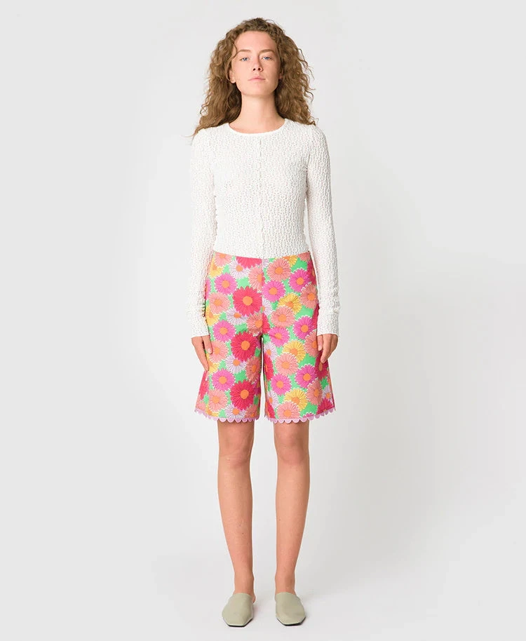 Resume pink and green ‘Libby RS’ long shorts featuring a high waist style, a concealed side zip fastening, a multicoloured floral print and scalloped trimming on the hem. Item fits true to size. Model is wearing a size 36 DE/DK.