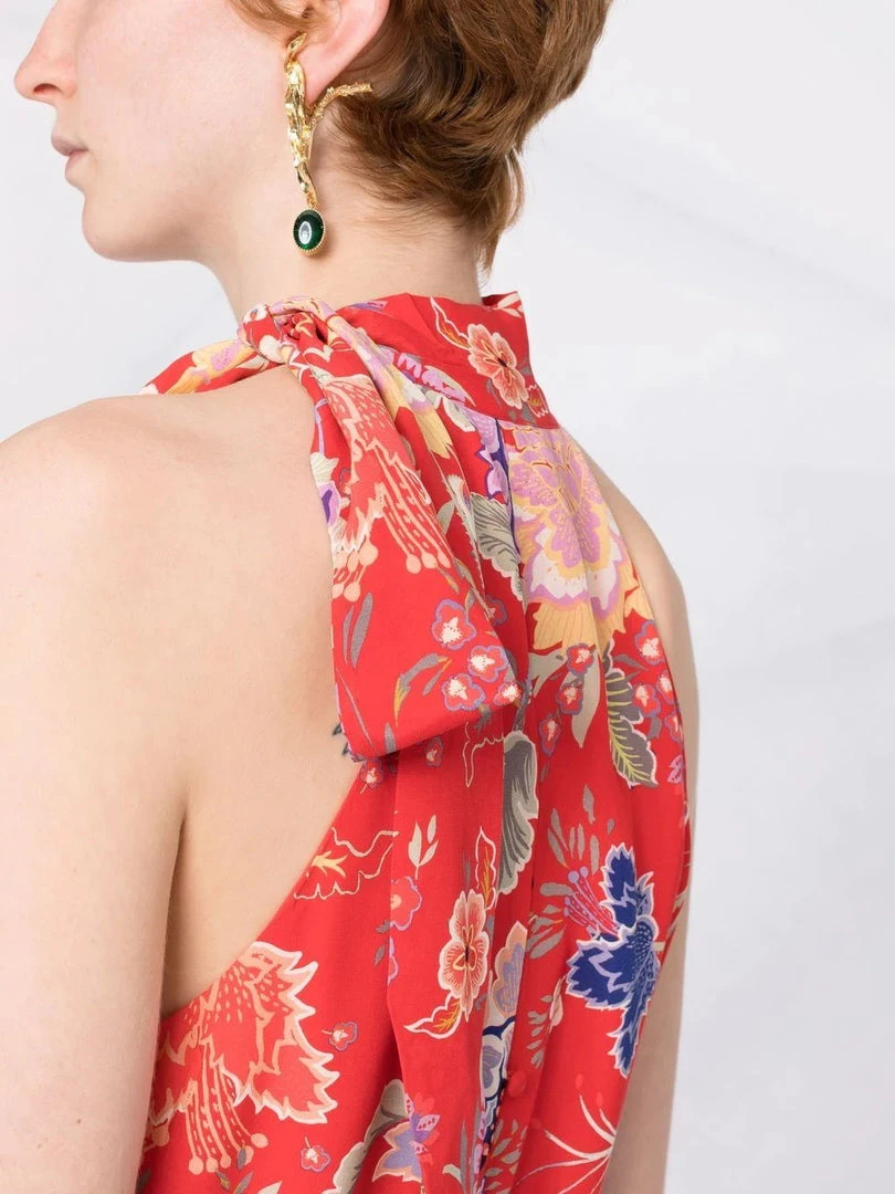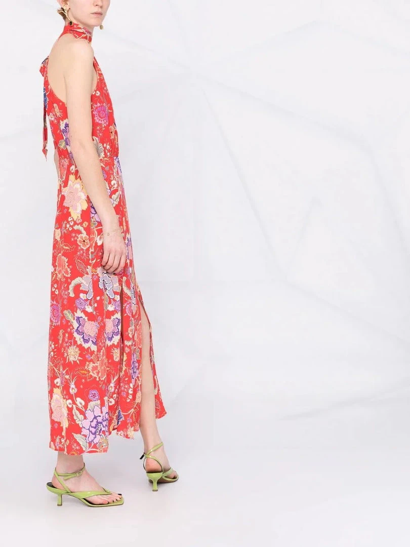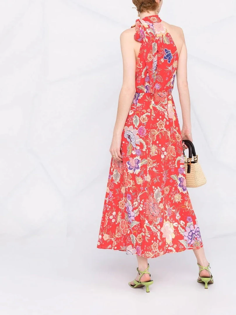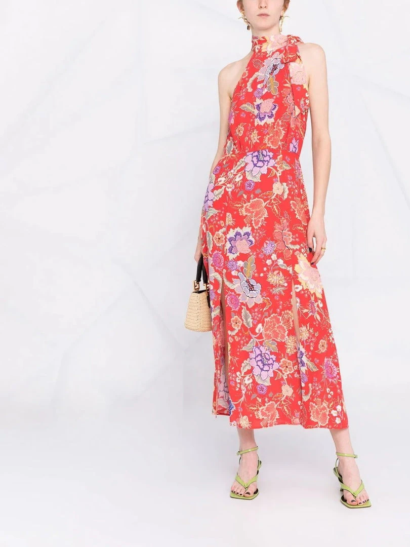 Rixo London ‘Valerie’ Neck Tie Floral Midi Dress