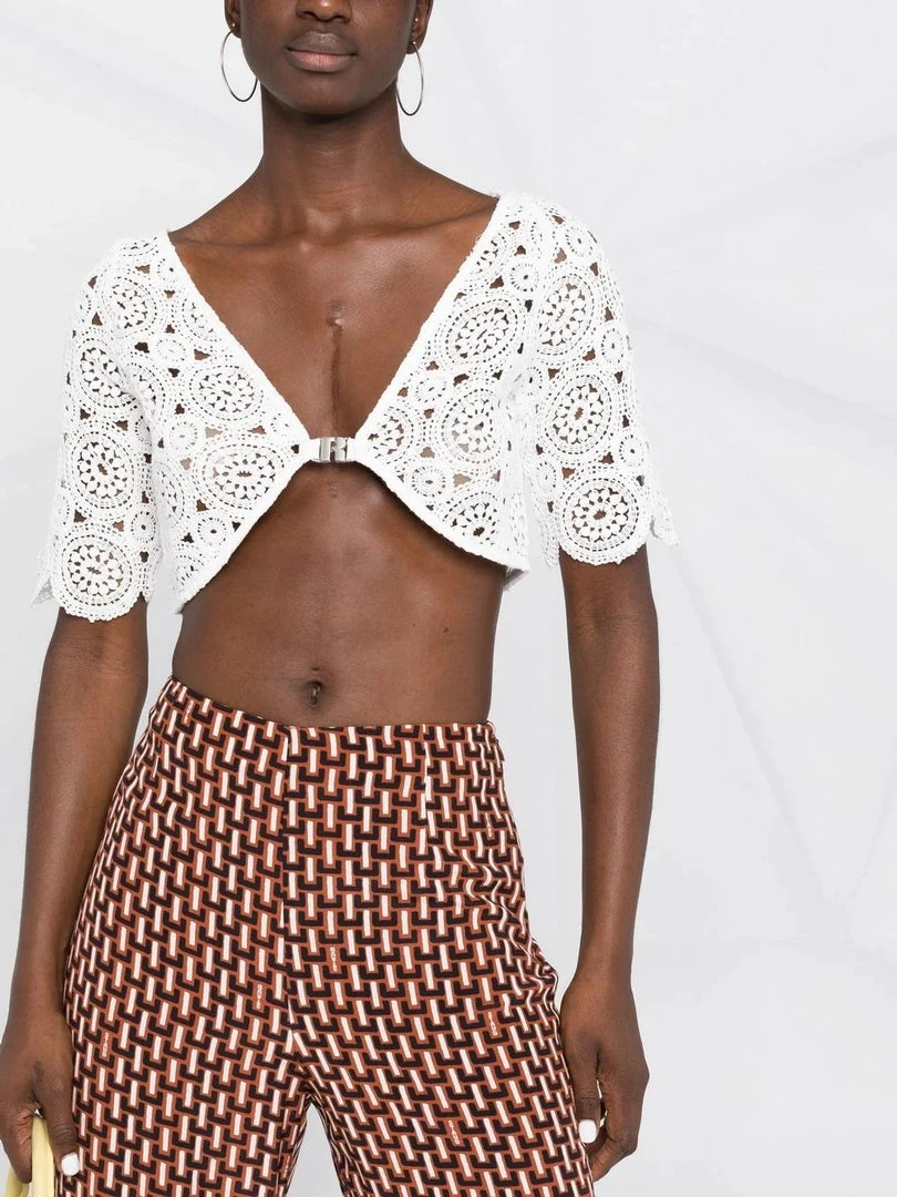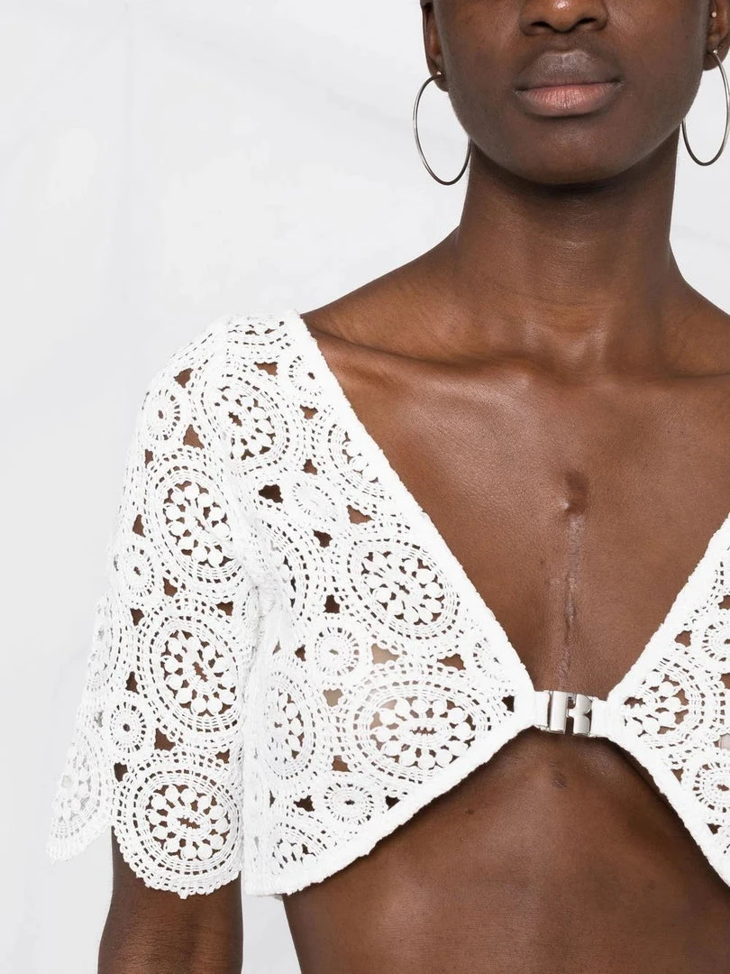 ROTATE Clothing White ‘Milandran’ Crochet Crop Top