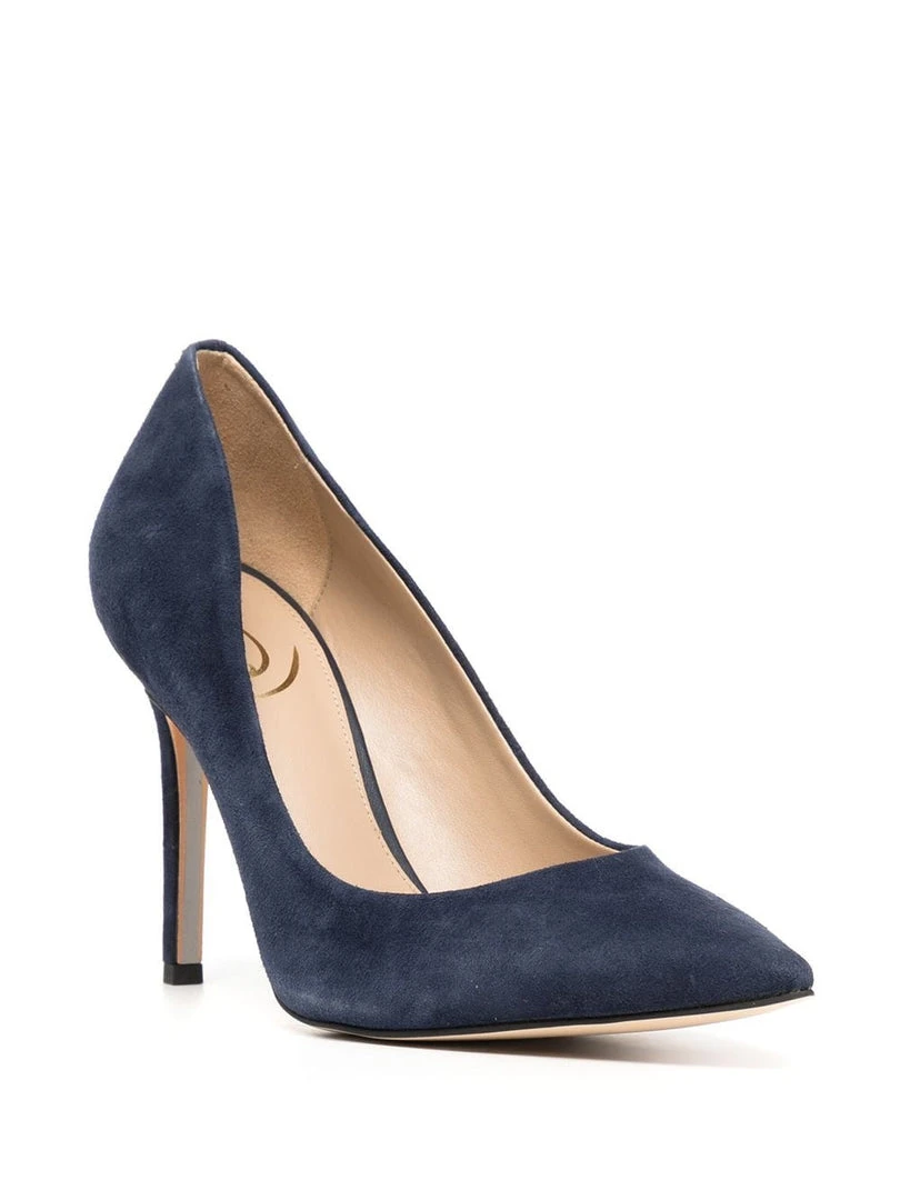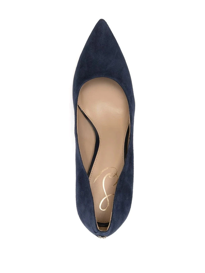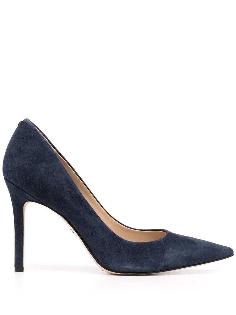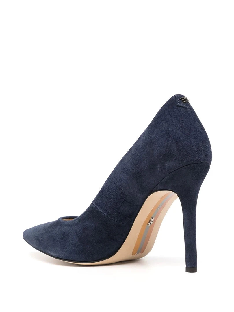 Sam Edelman navy ‘Hazel’ suede court heels featuring a pointed toe, a branded insole, a 10cm stiletto heel and slips on. Made in Vietnam. Item fits true to size. US Sizing.Â