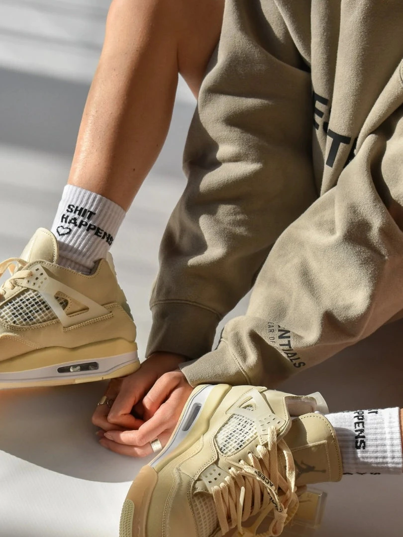 Soxygen unisex white ‘Shit Happens’ classic socks featuring a cushioned heel and toe, arch support, a brand logo on the sole, a black ‘You Got This’ slogan and love heart on the sides and a ribbed design. Item is One Size.