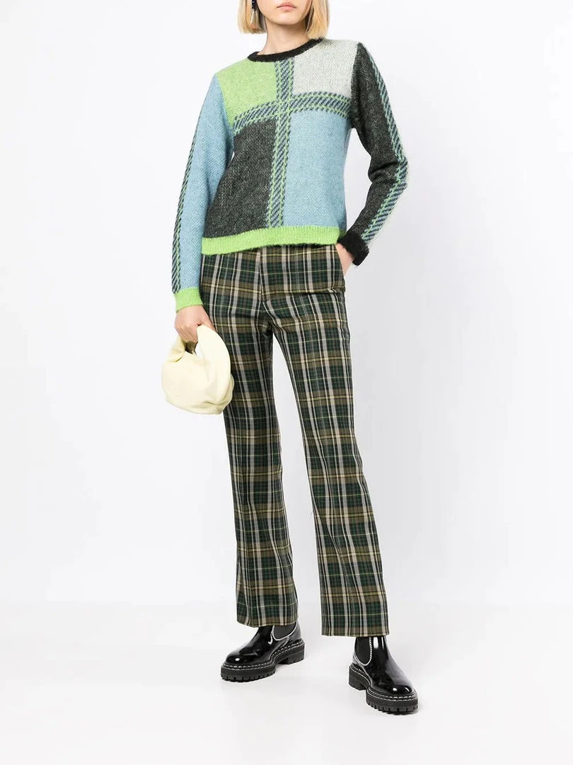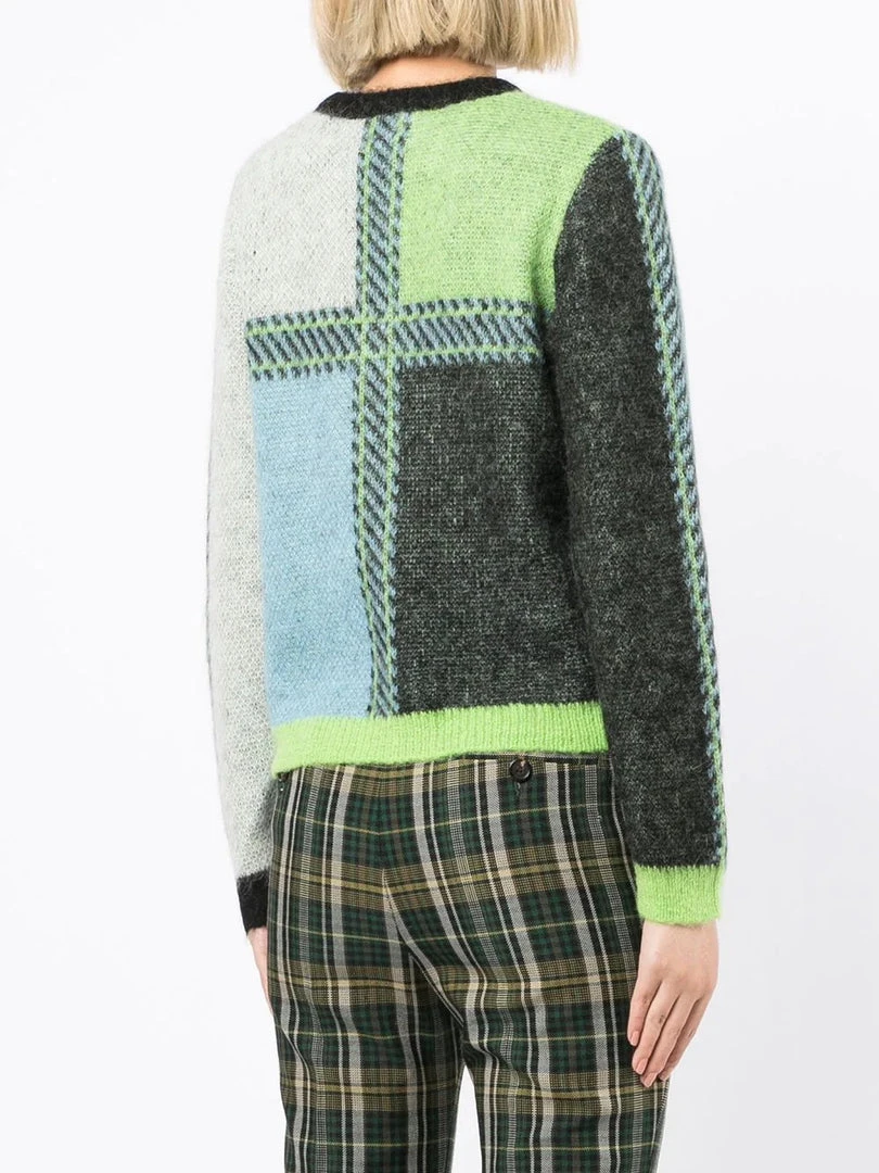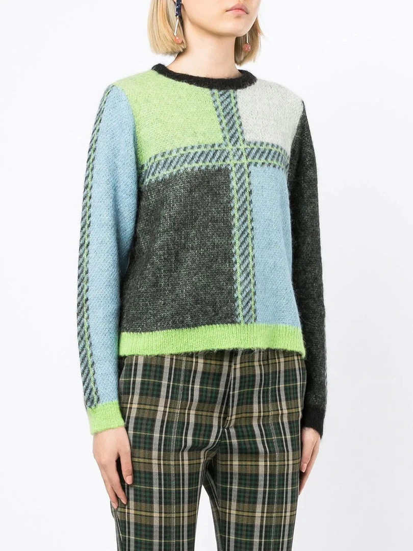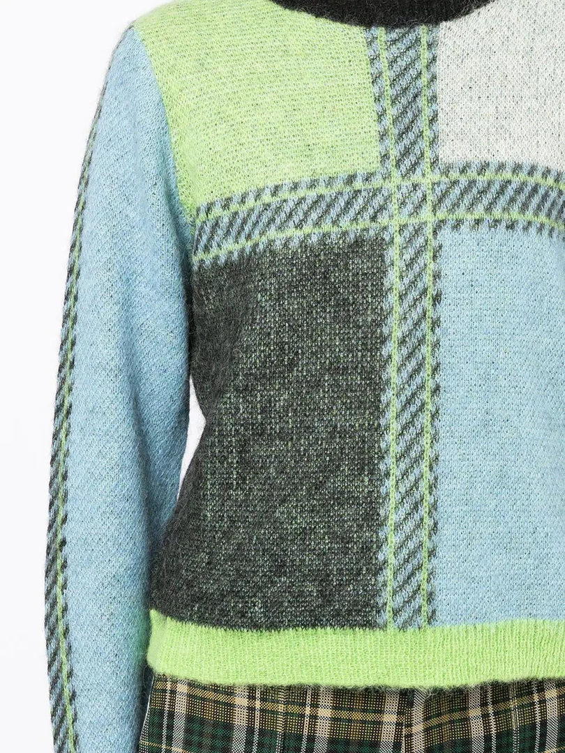 Stella Nova ‘Rima Joe’ check sweater featuring a round neckline, long sleeves, a green, blue and black oversized check print, a straight hemline and pulls on. Item fits true to size. Model is wearing a size XS.Â