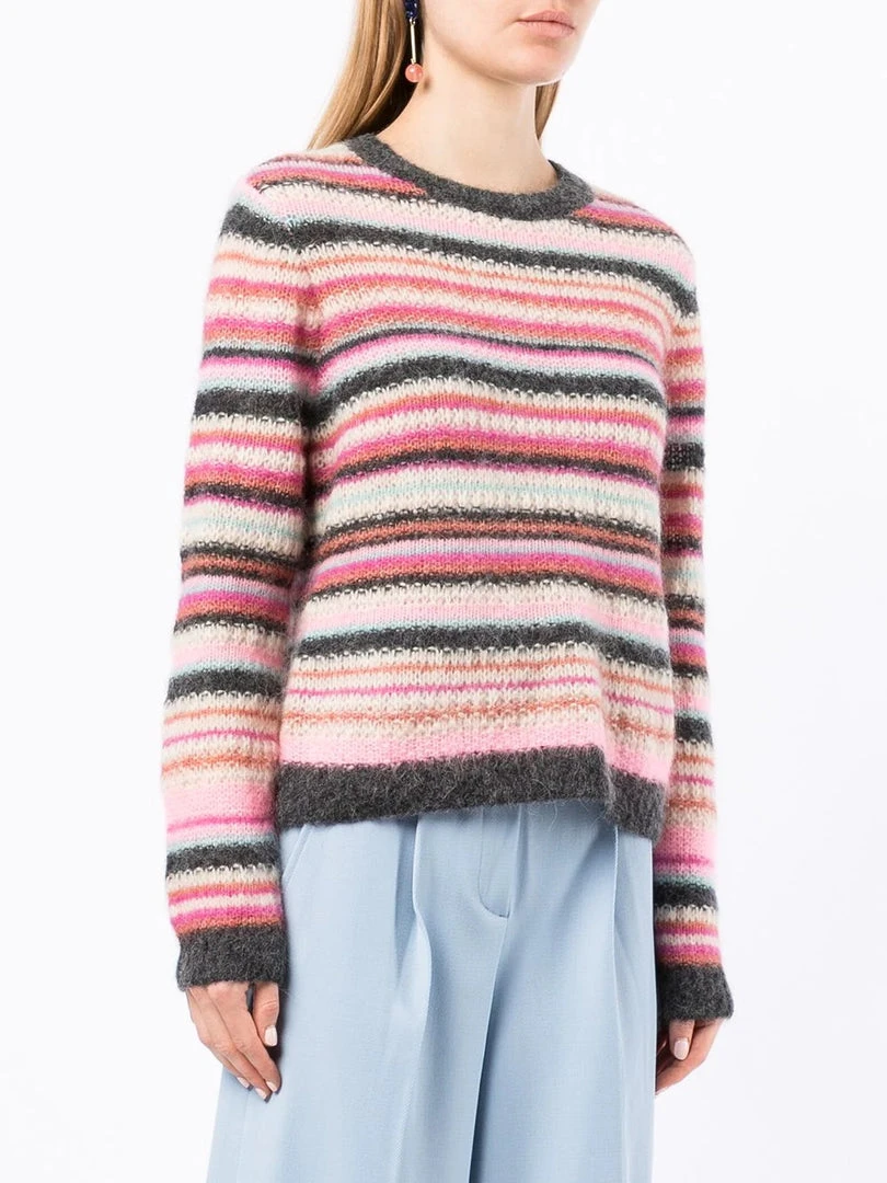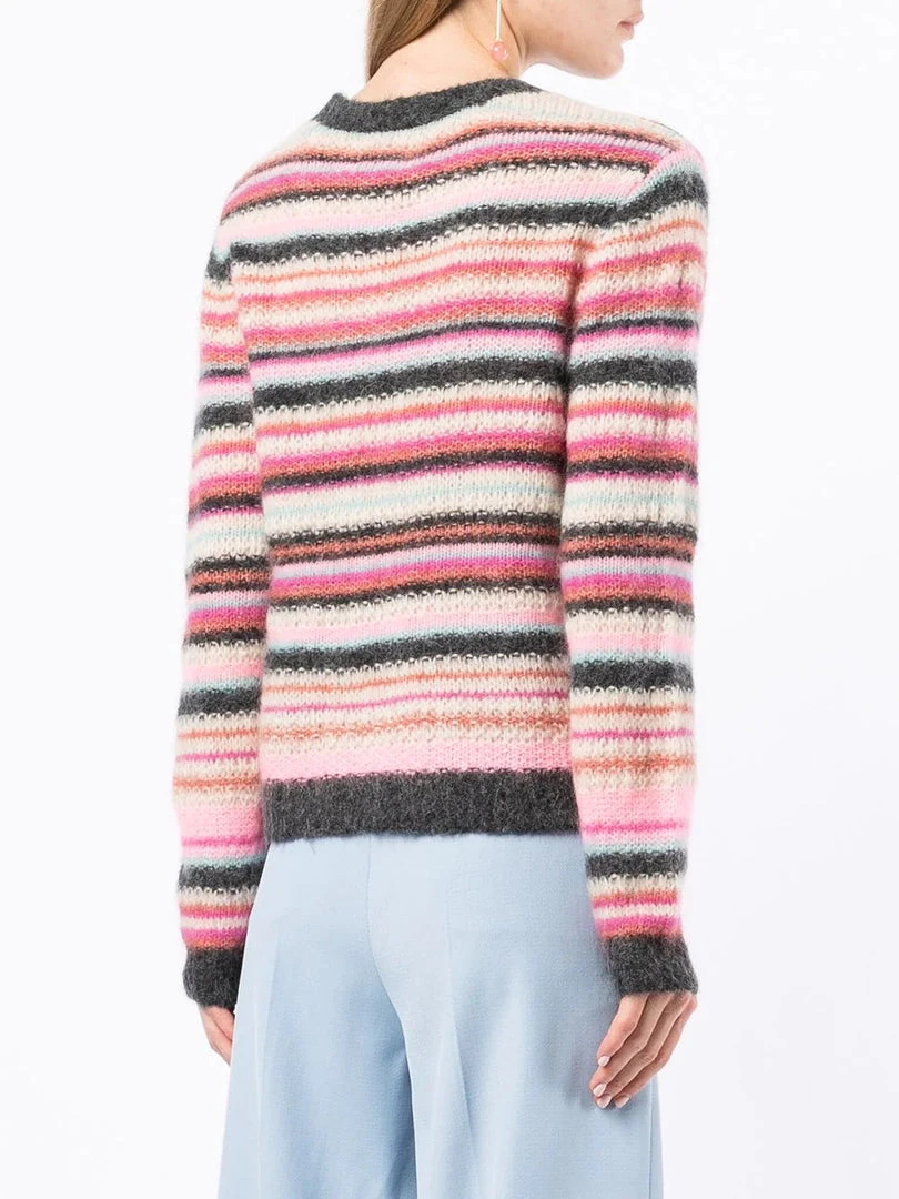 Stella Nova ‘Rima’ stripe sweater featuring a crew neckline, long sleeves, a multicoloured stripe knit and pulls on. Item fits true to size. Model is wearing a size S.Â