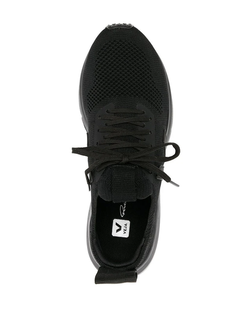 Veja x Rick Owens black ‘Runner Trainers’ featuring a round toe, a lace up fastening, an oversized pull tab at the rear, a signature ‘v’ to the side and a chunky rubber sole. Made in Brazil. Item fits true to size. European Sizing.