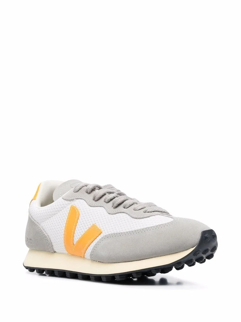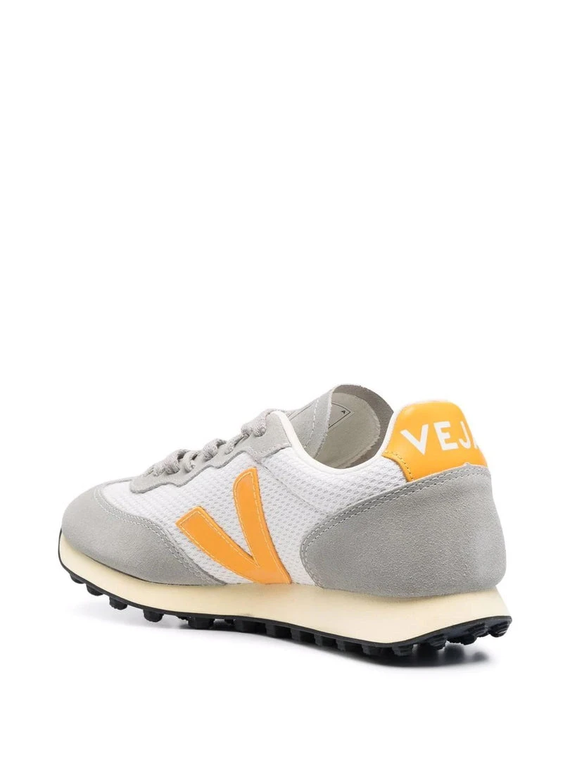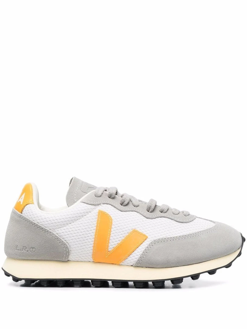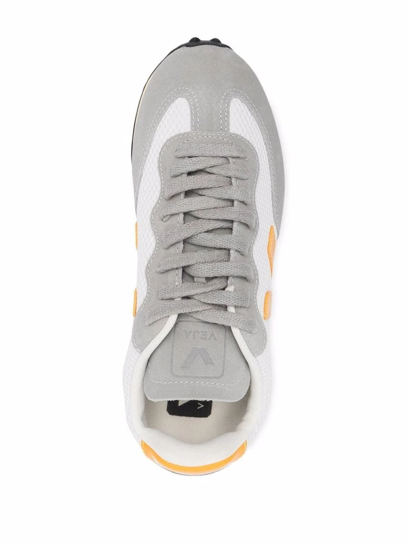 Veja grey and yellow ‘Rio Branco’ suede trainers featuring a round toe, a front lace-up fastening, mesh side panels, signature ‘V’ details on the sides, an embossed branded logo on the tongue and a yellow branded heel counter. Item fits true to size. European Sizing. Made in Brazil.