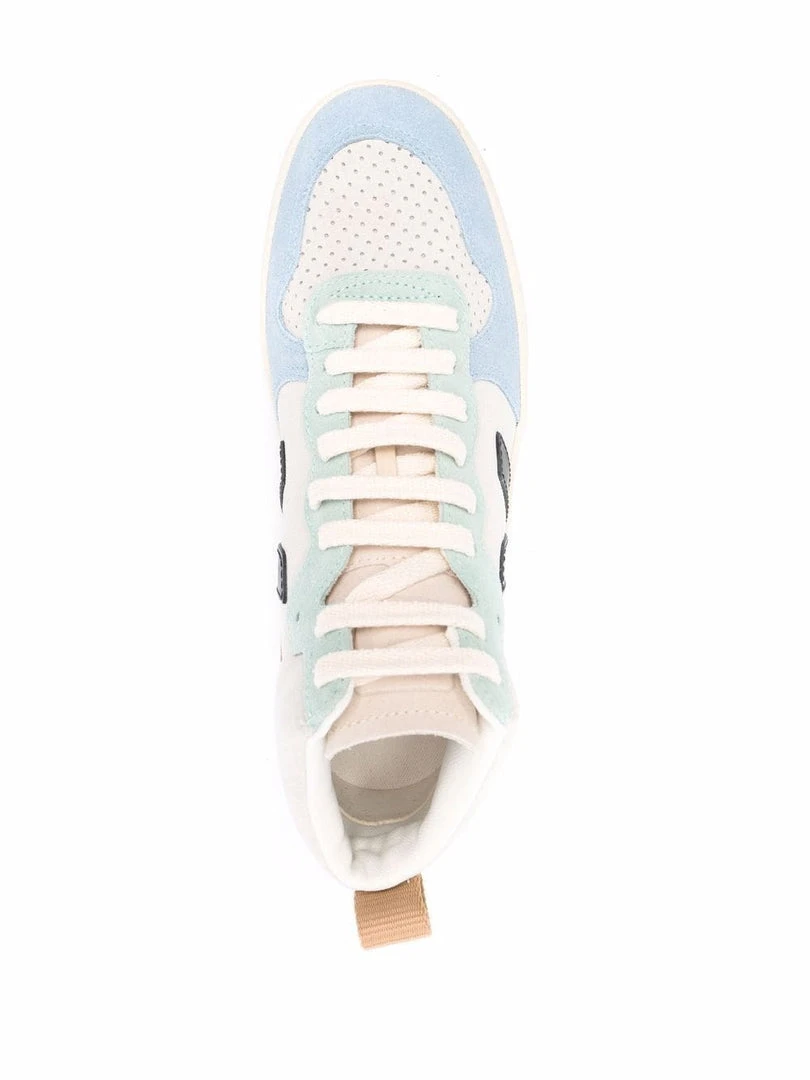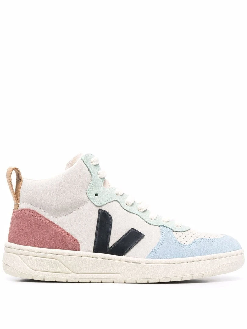 Veja ‘V-15 Trainers’ featuring a round toe, a front lace up fastening, contrasting logo details on the sides, a pastel block coloured design, a pull tab at the rear and a high top style. Made in Brazil. Item fits true to size. European Sizing.