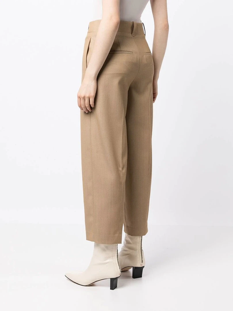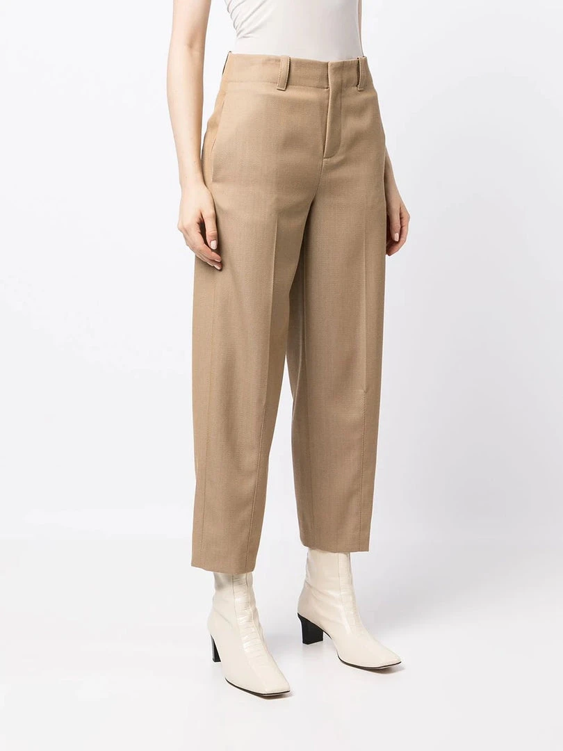 Vince sand toned ‘Tapered Cropped Trousers’ featuring front hook and zip fastenings, belt loops, a four pocket design, a straight leg fit and a cropped style. Item fits true to size. Model is wearing a size 4 US.Â