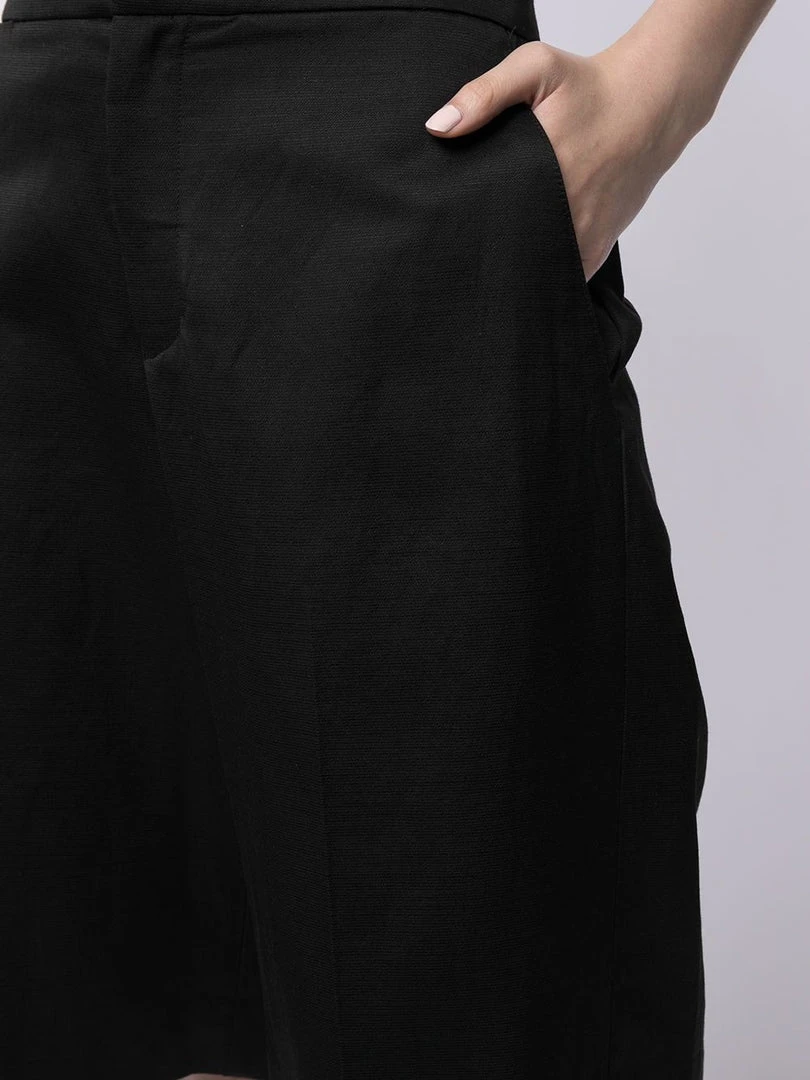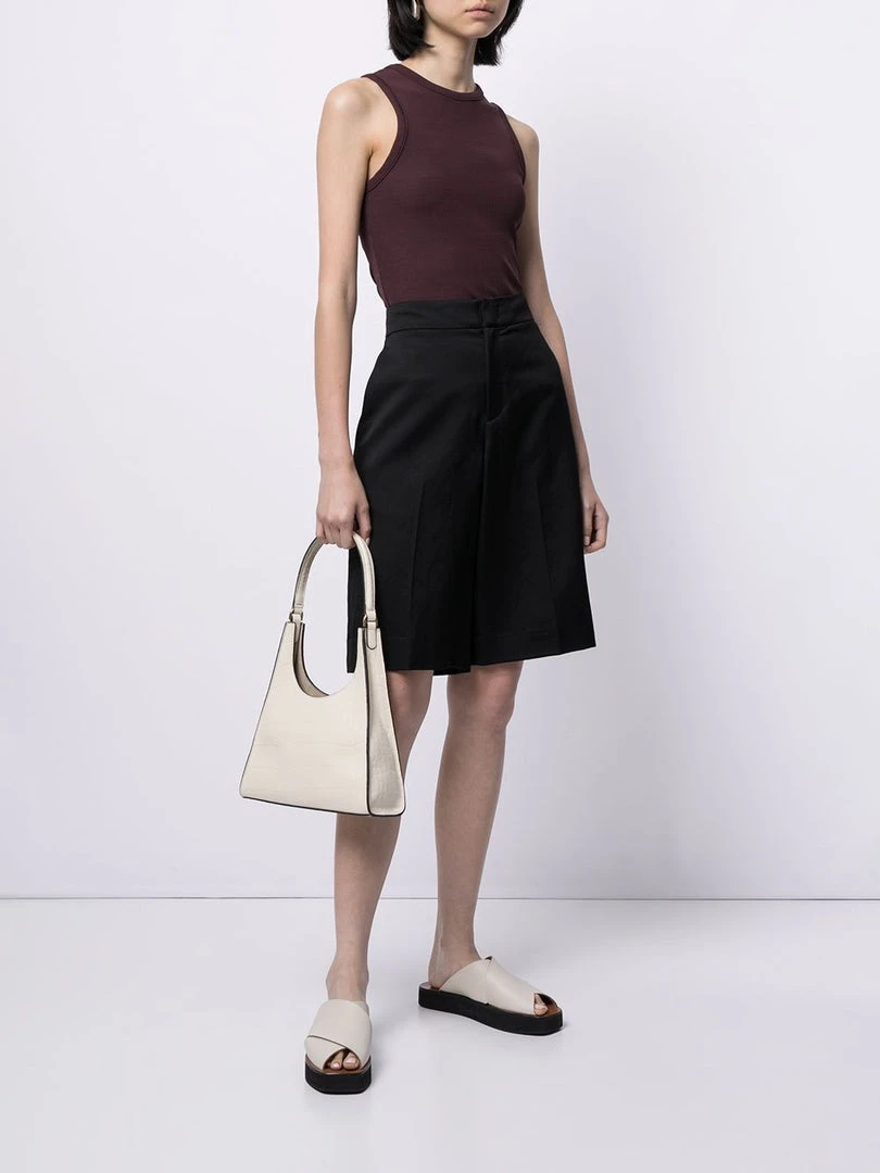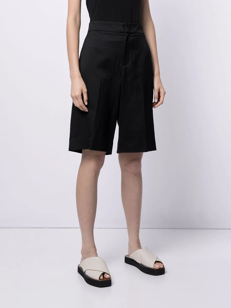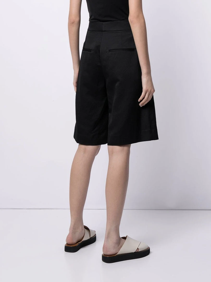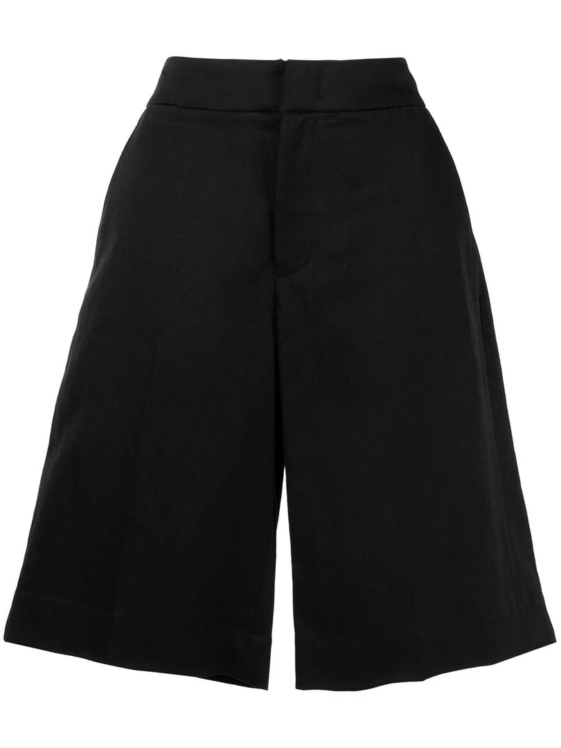 Vince black ‘Wide-Leg Shorts’ featuring a high waist fit, a concealed front fastening, two side slit pockets, two rear welt pockets and a wide leg fit. Item fits true to size. Model is wearing a size 4 US.Â