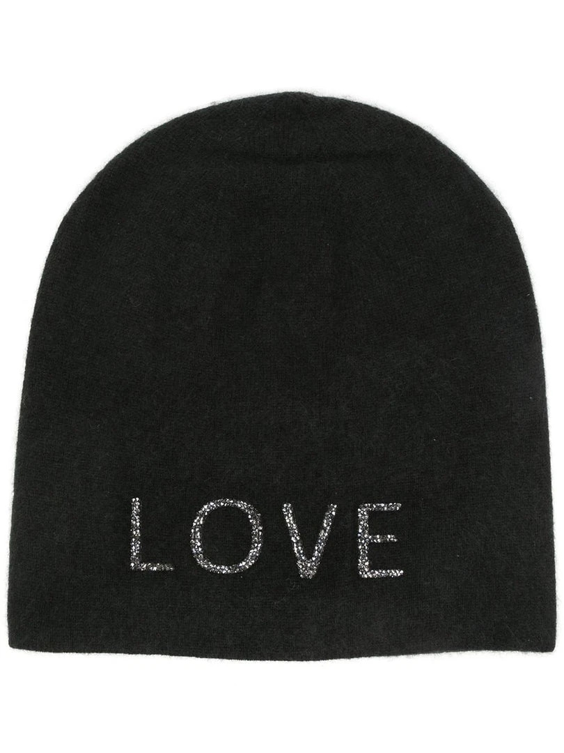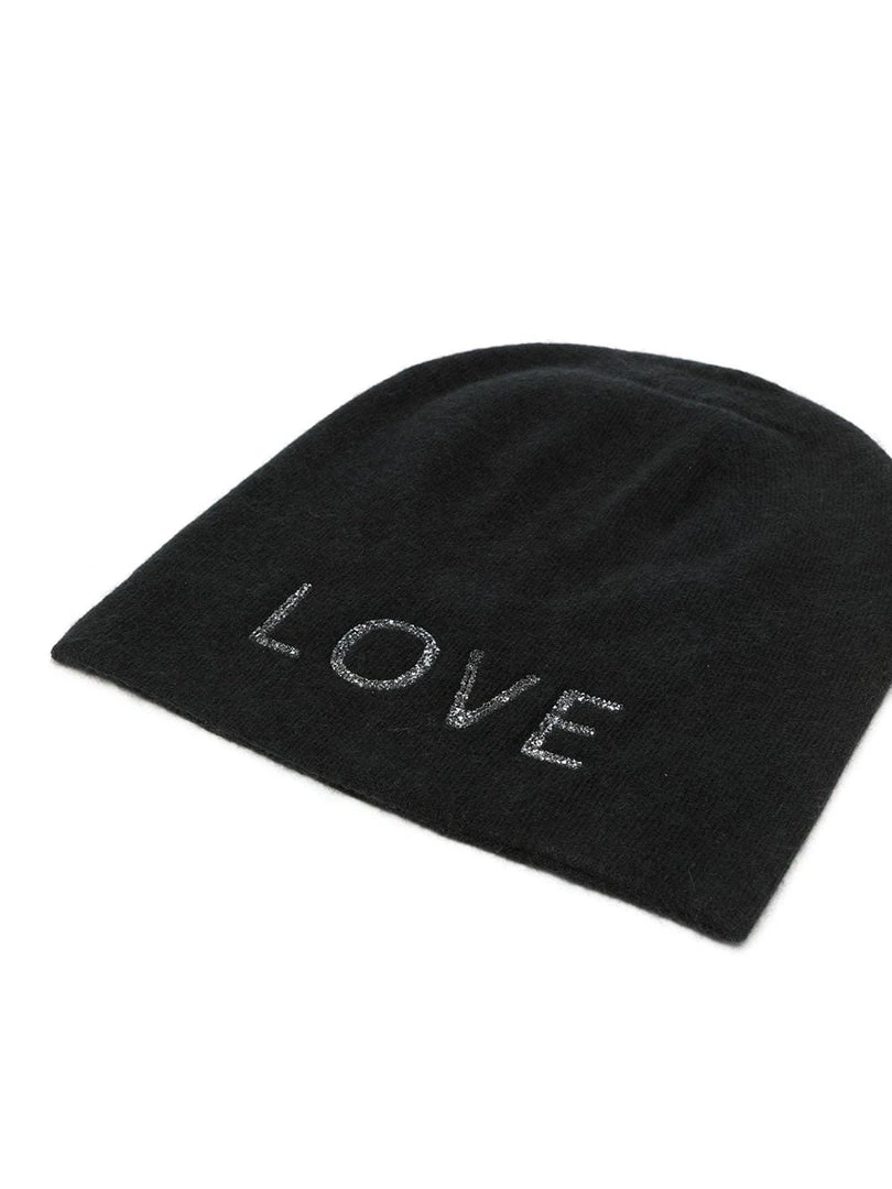 Warm-Me handmade cashmere ‘Damian Love Black Crystal Hat’ featuring a front ‘Love’ design embellished with black Swarovski crystals, a pull on style and a slouchy fit. Made in Nepal. One Size.Â
