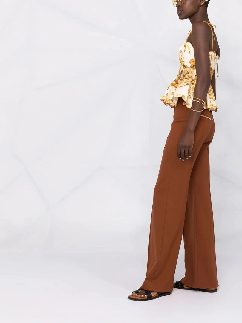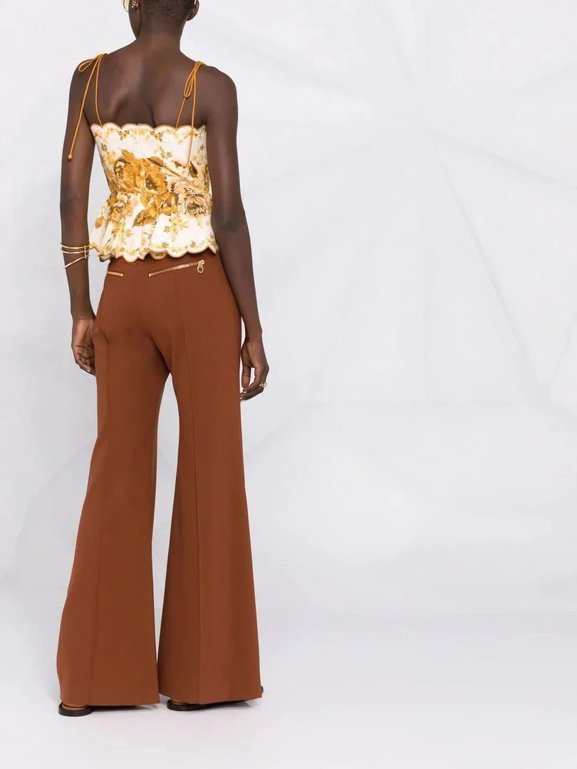Zimmermann ‘Aliane’ floral scallop top featuring adjustable tie-up straps with beaded ends, a back zip fastening, an embroidered floral print design, a peplum style hemline and scalloped trimming. Item fits true to size. Model is wearing a size 0 AU.
